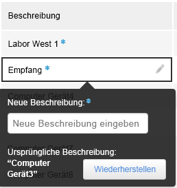 Ein blaues Sternchen neben dem Text gibt an, dass der ursprünglichen Wert bearbeitet wurde.