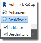 Wenn die Punktwolke RealView-Indikatoren und -Beschreibungen enthält, können Sie deren Anzeige über das Dropdown-Menü RealView aktivieren und deaktivieren.