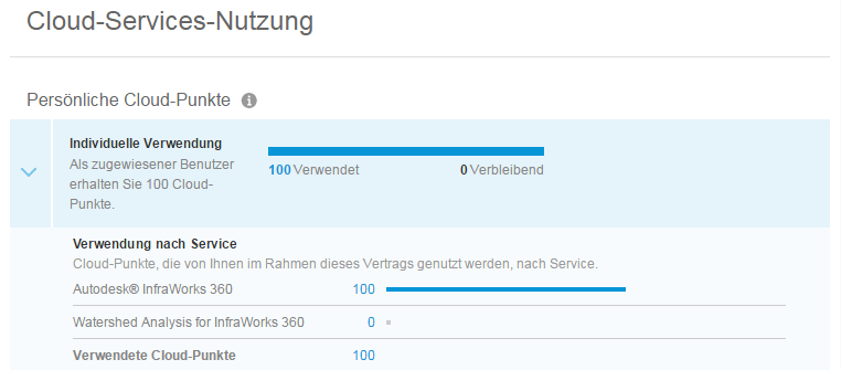 Cloud-Punkte können nur von Vertragsadministratoren oder Software-Koordinatoren für Subscription-Kunden erworben werden. Subscription-Benutzer von InfraWorks 360 erhalten ein Geschenk von 100 Cloud-Punkten pro Lizenz für jedes Jahr der Subscription (InfraWorks 360 LT ist ausgeschlossen). Subscription-Benutzer können zusätzliche Cloud-Punkte über den Autodesk Online-Shop, bei Autodesk-Fachhändlern und im Autodesk-Direktverkauf erwerben.