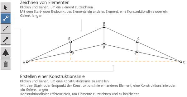 Verwenden Sie ForceEffect zum Erstellen von Freikörper-Diagrammen für die Simulation von Konstruktionsoptionen während der Konzeptphase einer Konstruktion. Mit ForceEffect-Simulationen können Sie die technischen Berechnungen zur Ermittlung der Realisierbarkeit der einzelnen Konstruktionskonzepte durchführen. Wenn Sie fertig sind, können Sie die Vektorgeometrie speichern und entweder als Bauteil- oder Baugruppen-Rahmenskizze öffnen.