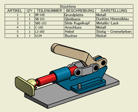Sie können eine Teileliste, Bohrung, Revision oder allgemeine Tabelle erstellen und dann die Tabellensegmente an die gewünschte Position im Zeichnungsblatt verschieben.