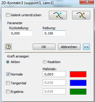 4. Klicken Sie in der Multifunktionsleiste auf Registerkarte Dynamische Simulation Gruppe Gelenk Gelenk einfügen, und wählen Sie aus der Liste 2D-Kontakt aus.
