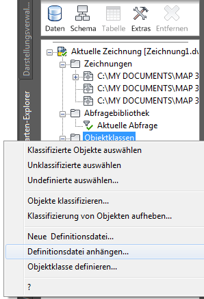 Beginnen Sie damit, eine Karte zu erstellen und die Datei MyDefinition.xml mit der Objektklassendefinition sowie die Quellzeichnungen zuzuordnen.