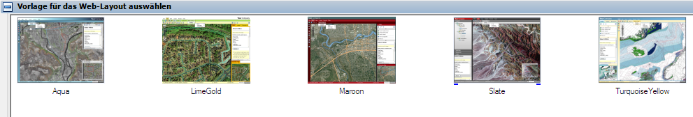 Sie können eine von fünf Vorlagen auswählen, um Ihr Web-Layout zu erstellen. Wenn Sie die Vorlage Aqua, LimeGold oder TurquoiseYellow auswählen, werden die Container im Registerkartenformat angezeigt. Wenn Sie die Vorlage Maroon oder Slate auswählen, werden die Container im Fensterformat angezeigt.