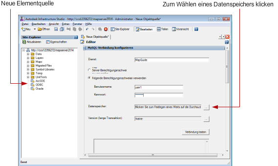 - Wählen Sie Map Server-Berechtigungsnachweise verwenden, wenn die Datenbank für deren Erkennung eingerichtet ist.