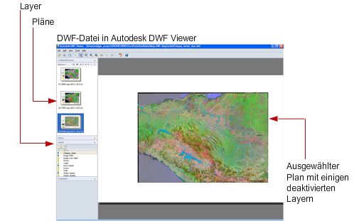 Eine DWF-Datei enthält zwei Elemente, die Sie bei der Erstellung eines Layers aus der DWF-Zeichnungsquelle in Autodesk Infrastructure Studio auswählen können: