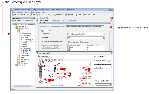 Im Site-Explorer können Sie die neuen Objektquellen und Layer umbenennen.