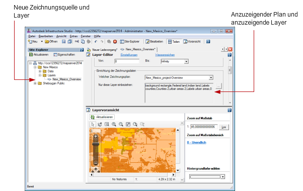Im Site-Explorer können Sie die neuen Zeichnungsquellen und Layer umbenennen.