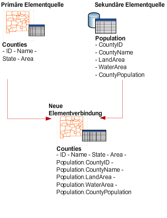 Die Abbildung unten zeigt ein Beispiel, wie eine Objektquelle mit Staats- und Ländergrenzen mit einer anderen Objektquelle mit Bevölkerungszahlen verbunden wird.