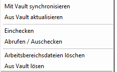 Die Optionen Mit Vault synchronisieren und Aus Vault aktualisieren müssen nicht mehr bestätigt werden. Bei der Synchronisierung wird jetzt nur dann ein Ergebnisdialogfeld angezeigt, wenn Fehler oder Warnungen vorliegen.
