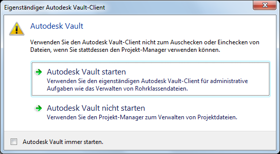 Das Dialogfeld Vault-Optionen wurde neu hinzugefügt. Der Autodesk Vault-Client wurde in ein neues Administrationsfenster verschoben.