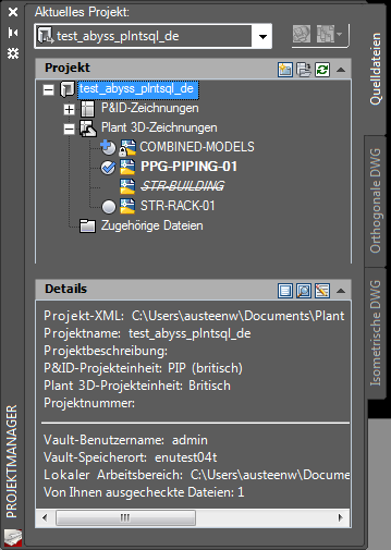 Im Detailbereich des Projektmanagers werden neue Vault-Statusdetails angezeigt.