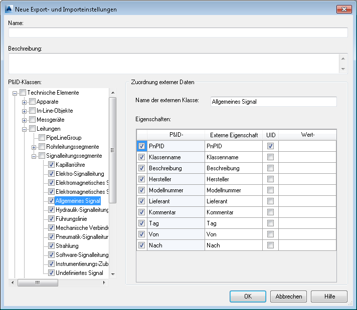 In diesem Dialogfeld sind die gleichen Optionen wie im Dialogfeld Neue Export- und Importeinstellungen enthalten.