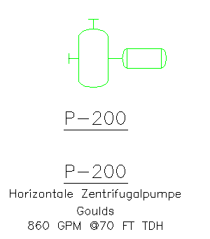 Im Folgenden wird eine horizontale Zentrifugalpumpe dargestellt, die mit einem Pumpen-Tag und einem Pumpeninformations-Tag beschriftet ist: