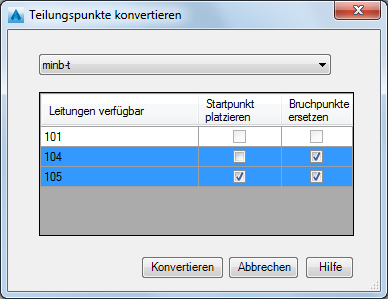- Klicken Sie auf die Option Teilungspunkte konvertieren. Das Dialogfeld Teilungspunkte konvertieren wird angezeigt.