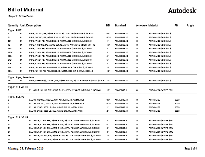 Im Folgenden sind zwei Beispielberichte aufgeführt. Der erste ist ein Bericht für 3D-Bauteile (Britisch) und der zweite ein P&D-Rohrklassenblatt. Beide Berichte liegen im PDF-Format vor.