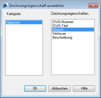 - Führen Sie im Dialogfeld Zeichnungseigenschaft auswählen die folgenden Schritte durch: