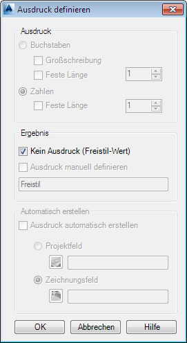 Wenn der Abschnitt Ausdruck deaktiviert ist, müssen Sie unter Ergebnis das Kontrollkästchen Kein Ausdruck (Freistil-Wert) deaktivieren. Führen Sie anschließend die Anweisungen in Schritt 14 aus.