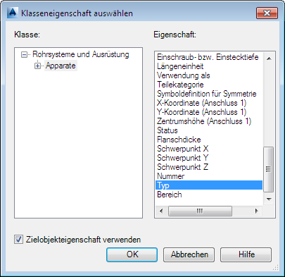 - Aktivieren Sie das Kontrollkästchen Zielobjekteigenschaft verwenden.