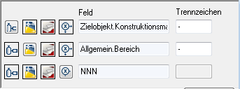 Tipp: Verwenden Sie so viele Eigenschaften als untergeordnete Teile wie erforderlich. Verwenden Sie Trennzeichen nur zwischen diesen untergeordneten Teilen, nicht innerhalb von ihnen. Trennzeichen werden zwischen den untergeordneten Teilen in einem Tag angezeigt, wenn Sie sie im Feld Trennzeichen angeben. Wenn Sie unter Feld Bindestriche zwischen den Elementen eingeben (z. B. N-N-N), hat dies möglicherweise unerwünschte Ergebnisse zur Folge.
