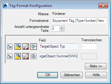 - Geben Sie im Dialogfeld Tag-Format-Konfiguration in das Feld Formatname den Namen des neuen Formats ein (beispielsweise Apparatebeschriftung [Typ-Nummer] Neu ).