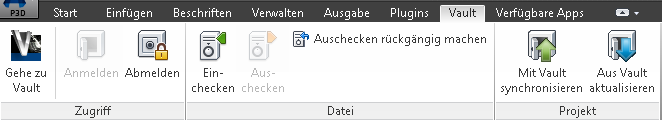 Sie können Ihre Vault-Sitzungen und Vault-Projektdateien über die Multifunktionsleiste verwalten.