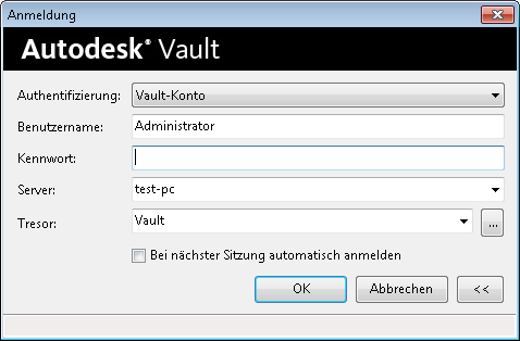 Autodesk Vault-Logins werden für die Dauer der Zeichensitzung beibehalten, sofern Sie sich nicht ausdrücklich abmelden. Wenn Sie auf einen anderen Vault zugreifen möchten, müssen Sie sich zunächst abmelden.