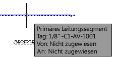 Wenn Sie die Fadenkreuze über einem Liniensegment positionieren, werden Rohrleitungstyp, Tag sowie Ziel und Quelle in einer QuickInfo angezeigt.