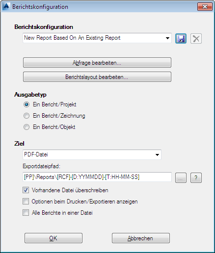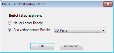 - Klicken Sie im Dialogfeld Neue Berichtskonfiguration auf Aus vorhandenem Bericht und wählen Sie die Konfiguration aus, die Sie ändern möchten. Klicken Sie auf OK.