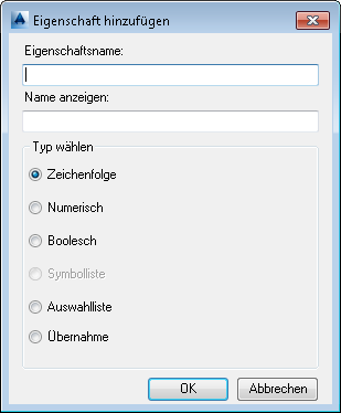 Geben Sie unter Eigenschaftsname einen Namen für die neue Eigenschaft ein. Der Name darf keine Leerzeichen enthalten.