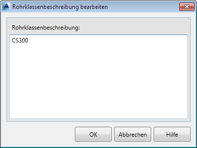Ermöglicht das Bearbeiten der Beschreibung des Rohrklassenblatts.