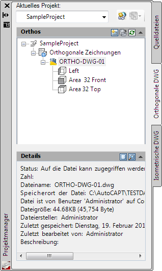 Zeigt 2D-Ableitungen an, die für ein Projekt erstellt wurden.