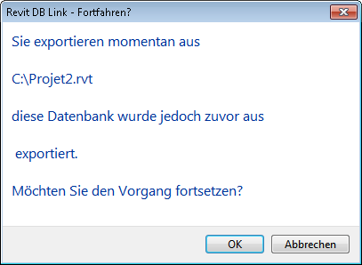 Anmerkung: Wenn Sie eine neue Zeichnung in eine bestehende Datenbank exportieren, wird das Dialogfeld Fortfahren? angezeigt.
