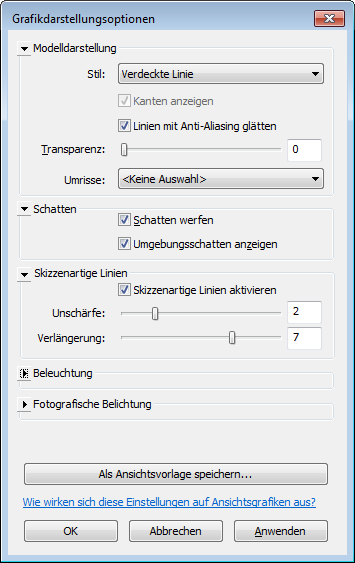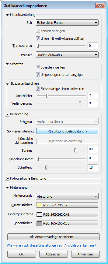 Für diese Ansicht werden die folgenden Einstellungen im Dialogfeld Grafikdarstellungsoptionen verwendet:
