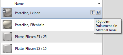 Um dem aktuellen Projekt ein Material hinzuzufügen, suchen Sie dieses zuerst in einer bestehenden Bibliothek. Anschließend haben Sie folgende Möglichkeiten: