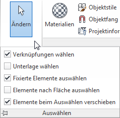 Wenn die Auswahl von Verknüpfungen und ihrer Elemente Sie bei der Auswahl von Elementen im Projekt behindert, deaktivieren Sie diese Option. Der Objektfang und die Ausrichtung an Elementen in Verknüpfungen sind auch dann möglich, wenn Verknüpfungen auswählen deaktiviert ist.
