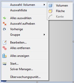 Der Auswahlmodus kann mithilfe von mehreren Methoden auf Volumen, Fläche oder Kante eingestellt werden: