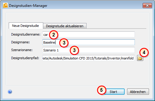 - Geben Sie in das Feld Designstudienname einen Namen für die Designstudie ein. Vorgabe ist der Name der übergeordneten Baugruppe oder des Teils.
