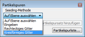 Schnittebenen eignen sich gut für die Darstellung eines zweidimensionalen Schnitts durch das Modell, aber die besten Informationen werden meist durch drei Dimensionen vermittelt. In diesem Schritt erstellen Sie Partikelspuren, um eine vollständige Ansicht der Strömung zu erhalten.