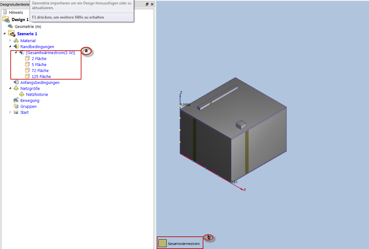 In diesem Schritt wenden wir eine Wärmedissipation (in Form einer volumetrischen Wärmeerzeugung) auf die sechs kleinen Chips auf der Leiterplatte an.