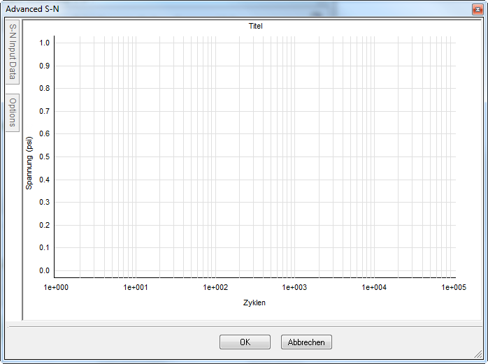 Bevor Sie diese dritte Eingabeoption auswählen, müssen Sie für das Material zuerst einen Wert ungleich Null für Zugstärke angeben. Klicken Sie anschließend auf das Symbol Benutzerdefinierte SN-Daten. Das folgende Dialogfeld wird angezeigt: