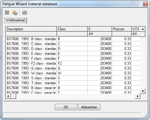 Die Schweiß-Materialdatenbank ist in der folgenden Abbildung dargestellt: