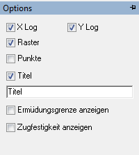 Mithilfe der Registerkarte Optionen legen Sie fest, ob die X- und Y-Skala linear oder logarithmisch ist.