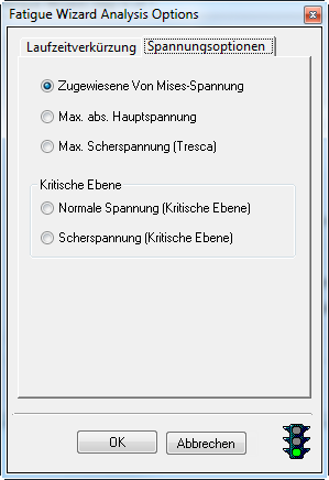Sie bestimmen, welcher Spannungswert besonders für die Berechnung geeignet ist. Einige Spannungsarten sind für dehnungsbasierte Analysen nicht verfügbar. Spannungsarten sind nicht verfügbar (grau dargestellt), wenn sie nicht auf die aktuelle Analyse angewendet werden können.