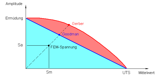 Bei der FEM mit einem gegebenen Knoten ist die Berechnung einer mittleren Spannung (Sm) und einer Amplitudenspannung (SA) möglich.