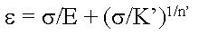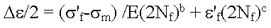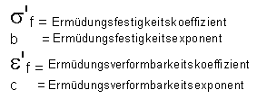 Bei der Seeger-Methode wird die Dehnungsermüdungskurve (dehnungsbasierte Koeffizienten) mit den folgenden Formeln angenähert: