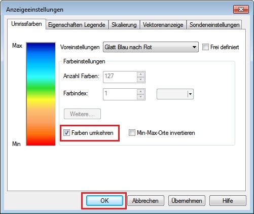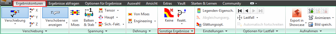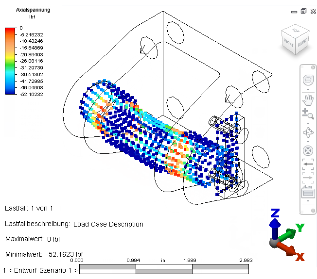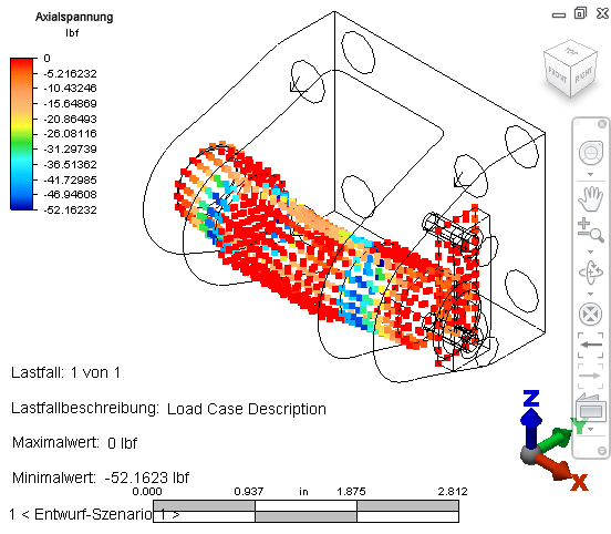 Da es sich bei allen Kräften um (negative) Druckspannungen oder 0-Spannungen handelt, ist die Legende etwas irreführend. Sie zeigt den höchsten Wert (also 0) in Rot an.