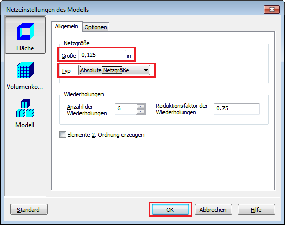 - Legen Sie den Typ auf Absolute Netzgröße fest. Geben Sie eine Größe von 0.125 ein, und klicken Sie auf OK.