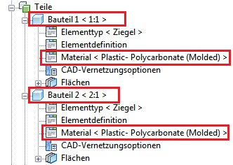 In diesem Schritt weisen wir den beiden Bauteilen Polycarbonat zu.