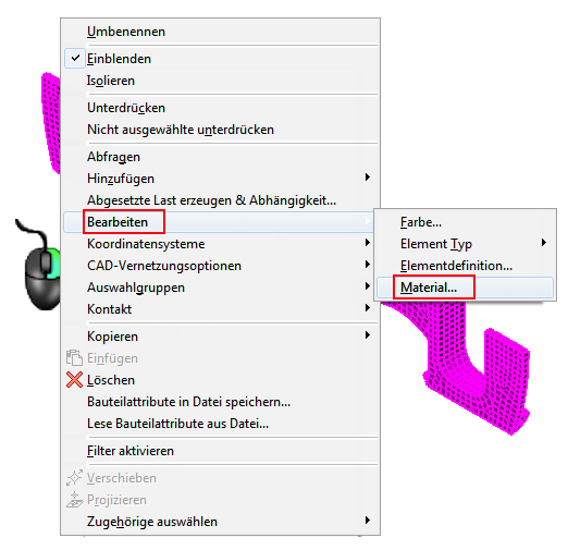 3. Klicken Sie mit der rechten Maustaste in den Anzeigebereich, und wählen Sie Bearbeiten > Material.